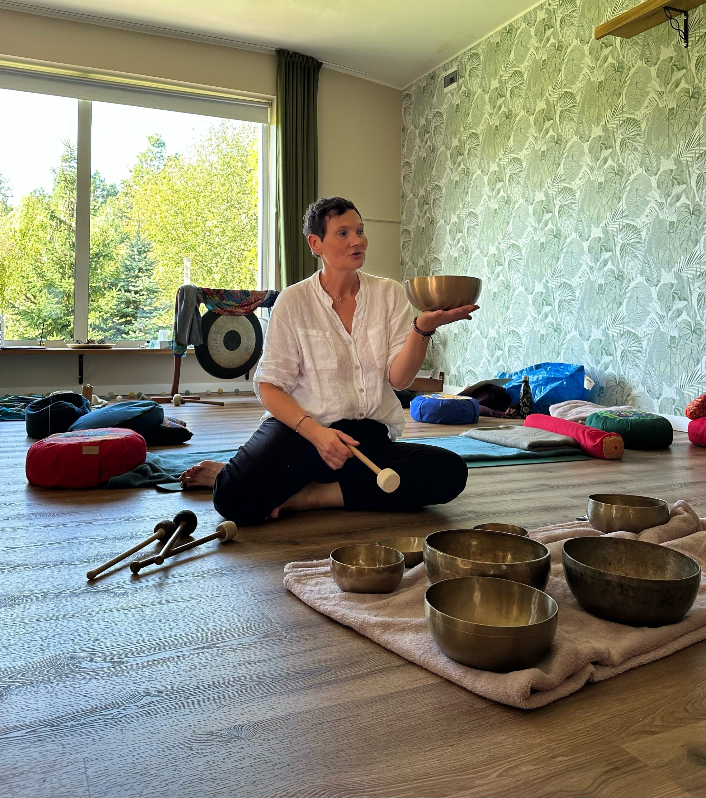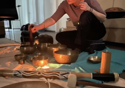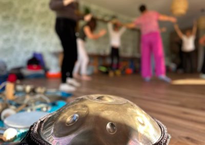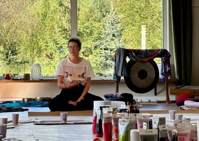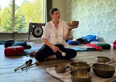 - Odkrywanie siebie poprzez brzmienie własnego głosu, wibracje dźwięków archaicznych instrumentów w połączeniu z oddechem.