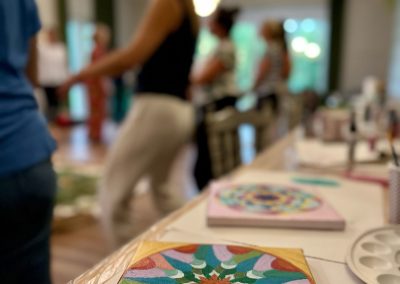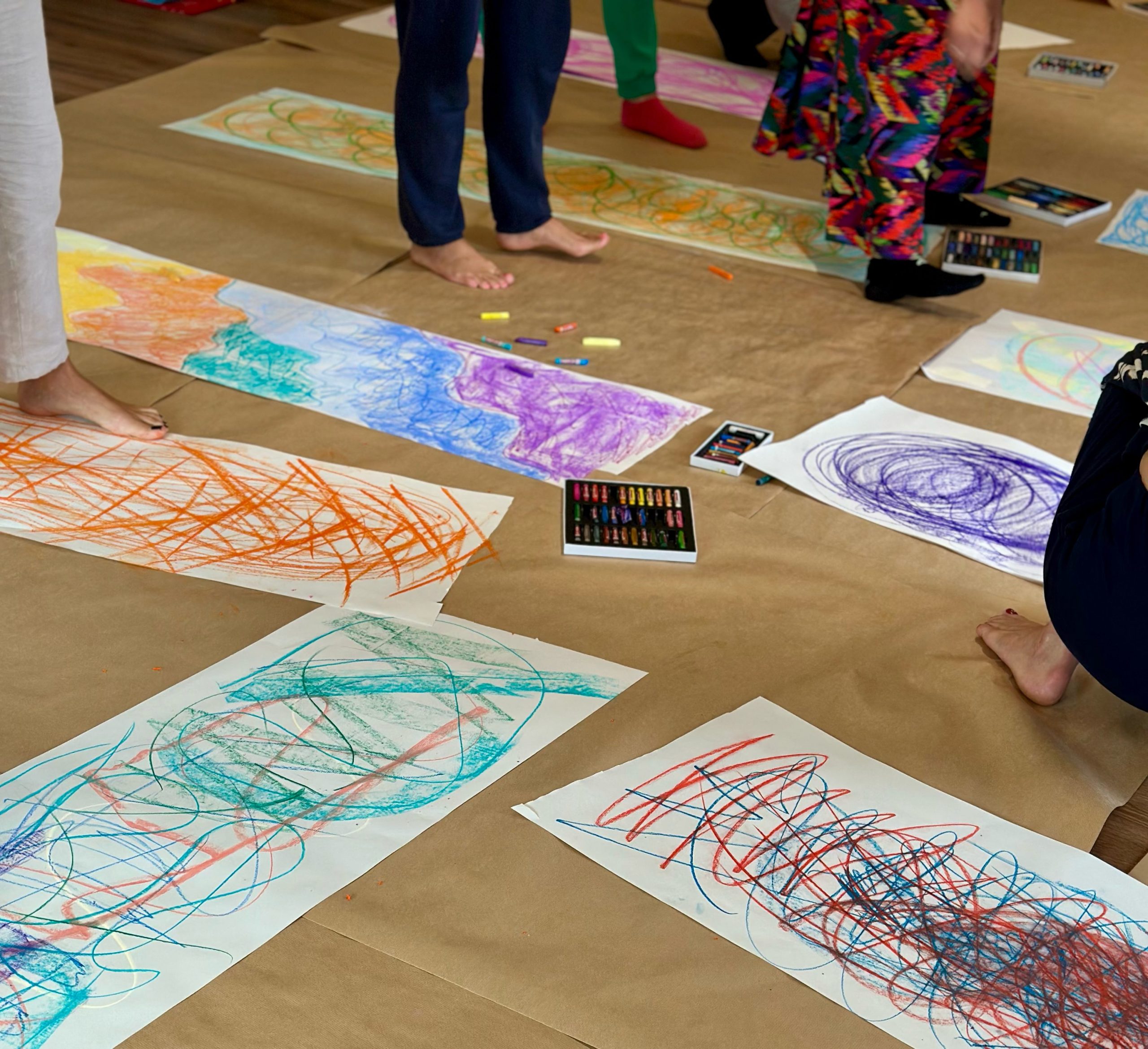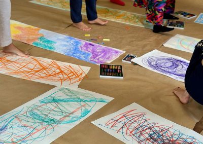 - Ćwiczenia malarskie kierowane oddechem, polegające na pracy z intuicją, podświadomością w oparciu o proste rysunki.
